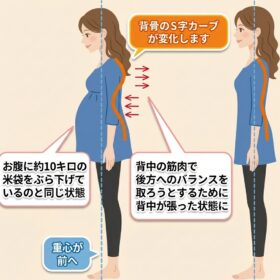 妊娠が進むにつれて、お腹は徐々に大きくなります。すると体の重心が前方へ移動します。