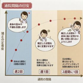 間隔が空きすぎると、整えた骨盤が元に戻りやすくなるため、一定のペースで通うことが大切です。